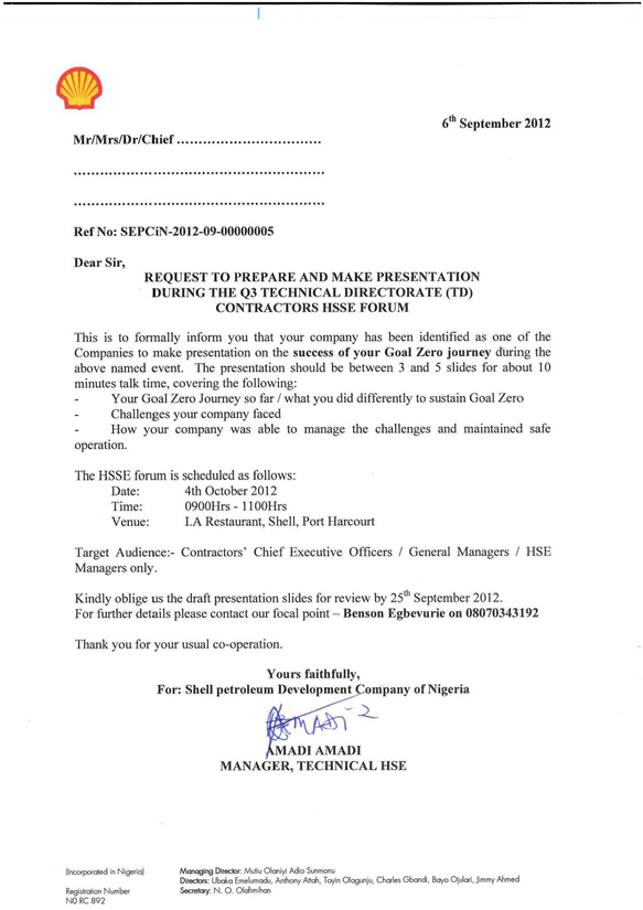 On October 4, 2012, Hilong Oil Service & Engineering Co., Ltd was invited to attend annual HSE Forum convened by Nigeria Project Party A SPDC. The attendants included senior executives of SHELL (CEO, Vice President, Vice President in charge of HSE), senior executives of its subsidiary SPDC, and general managers, deputy general managers and HSSE managers of each contractor. At the meeting, Hilong received SPDC commendation and was awarded Outstanding HSSE Management Medal.