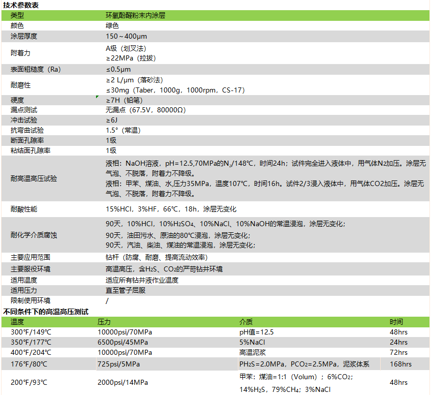 TC2000P是一種高性能的粉末內(nèi)涂層,主要用于含H2S、CO2的高溫、高壓天然氣鉆井環(huán)境。