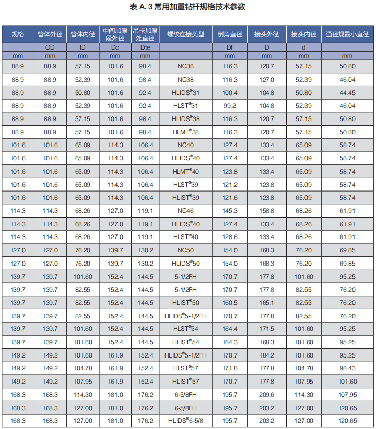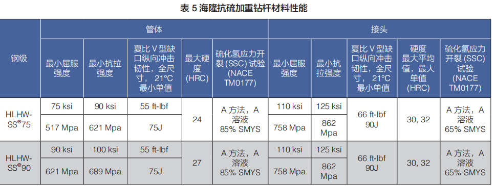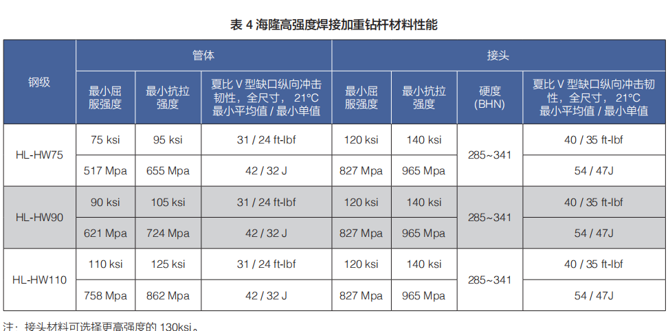(b)焊接加重鉆桿包括:標(biāo)準(zhǔn)強(qiáng)度焊接加重鉆桿、高強(qiáng)度焊接加重鉆桿、抗硫化氫加重鉆桿和海隆特殊扣加重鉆桿;