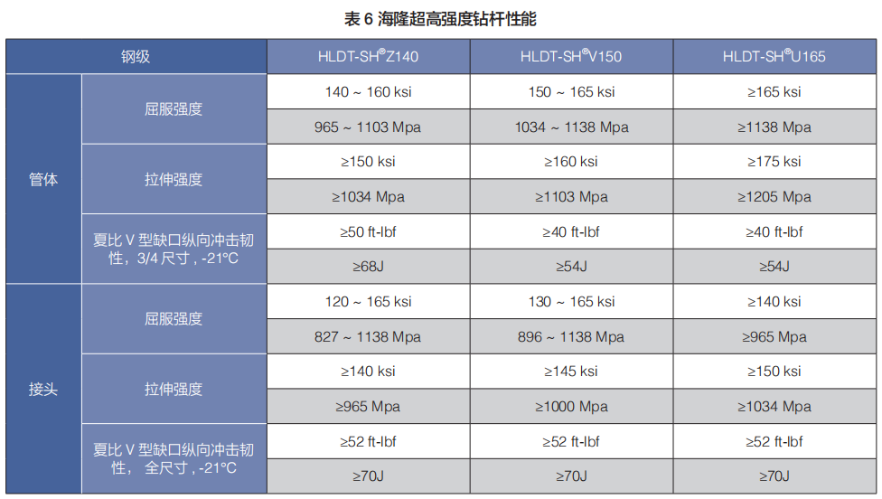 海隆超高強度鉆桿是一種適用于深井,超深井 , 大位移井等苛刻鉆井環境的專有產品,具有高強度、高韌性、高抗疲勞能力。通過采用特殊的材質及嚴格的熱處理工藝控制,使其在強度提高的同時,還具備良好的沖擊韌性。