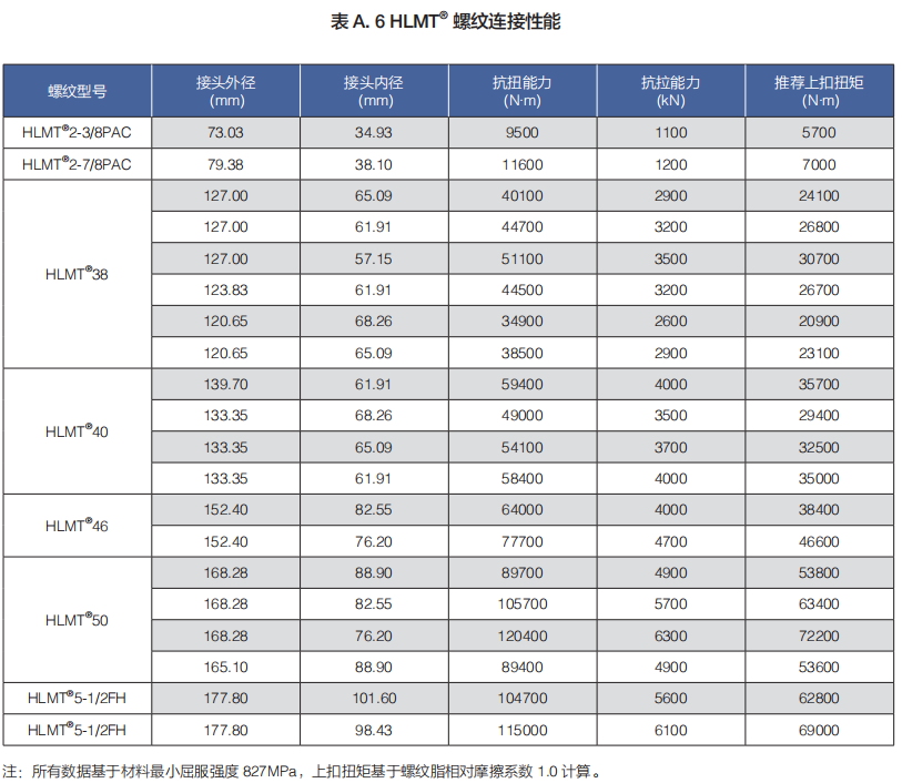 (b)HLMT® 系列包括 HLMT®2-3/8PAC、HLMT®2-7/8PAC、HLMT®38、HLMT®40、HLMT®46、HLMT®50、和 HLMT®5-1/2FH 等規(guī)格。
